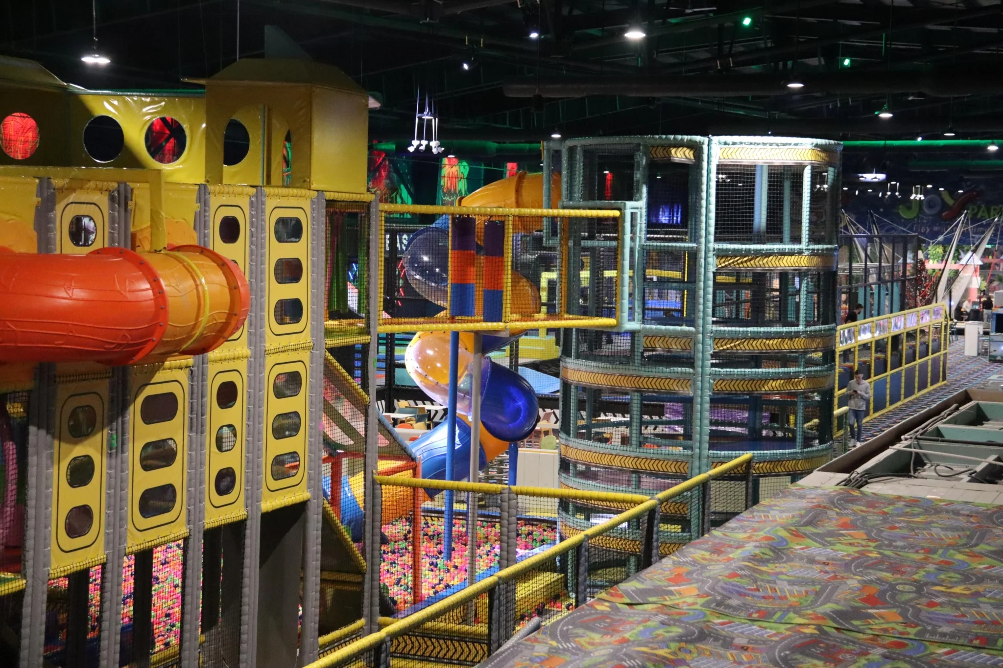 SoftPlay este labirintul uriaș al Joy Park Ploiești, un spațiu de aventură complet capitonat, unde copiii de 5+ ani se pot cățăra, aluneca și explora în deplină siguranță. Structura pe mai multe niveluri include tobogane rapide, tuneluri colorate, punți suspendate, piscine cu bile și obstacole moi care provoacă echilibrul și curajul. Toate materialele sunt certificate, moi și ușor de igienizat. SoftPlay este locul ideal pentru copiii energici care vor să se miște liber și să descopere noi trasee la fiecare vizită.